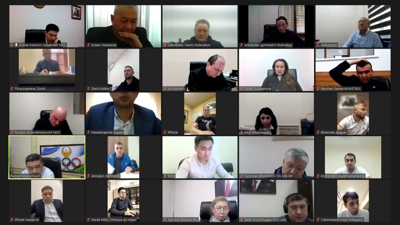 Бугун МОҚ раиси Рустам Шоабдураҳмонов бошчилигида Олимпия спорт турлари бўйича федерация ва ассоциациялар билан жорий йил кутиб турган йирик мусобақаларга тайёргарлик масалалари бўйича онлайн йиғилиш ўтказилди. Учрашувнинг кун тартибидаги асосий масала федерацияларнинг молия ва спорт бўлимлари фаолиятини янада такомиллаштириш бўлди.