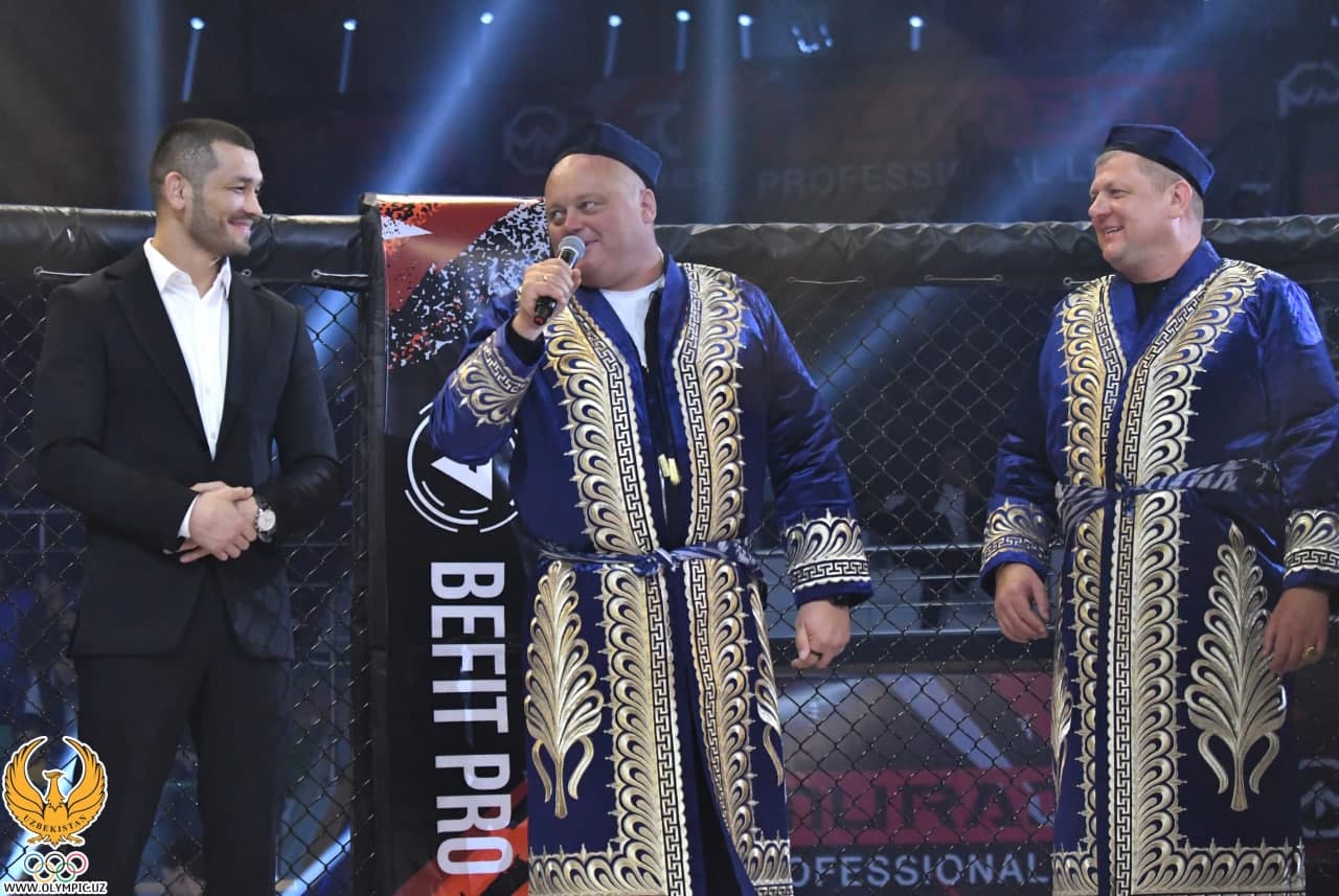 “Юнусобод спорт мажмуаси”да UFC промоушенида жанг қилаётган ҳамюртимиз Маҳмуд Муродов номига ташкил этилган “Muradov Professional League 3” лигасининг учинчи оқшоми бўлиб ўтди. Қайд этиш жоиз, бугун арена минглаб мухлислар билан тўлиб тошди. Регламентга кўра, оқшомда 11 нафар ҳамюртимиз октогонга кўтарилди.