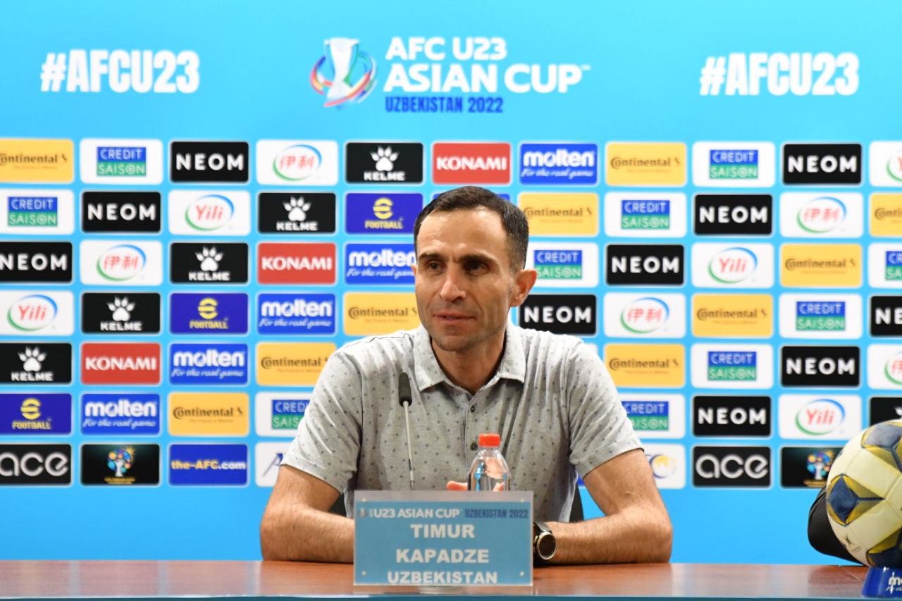 Футбол бўйича Ўзбекистон Олимпия терма жамоаси бош мураббийи Темур Кападзе Осиё кубоги ярим финалида қўлга киритилган ғалабадан сўнг матбуот анжуманида қатнашиб, ўз таассуротлари билан ўртоқлашди.