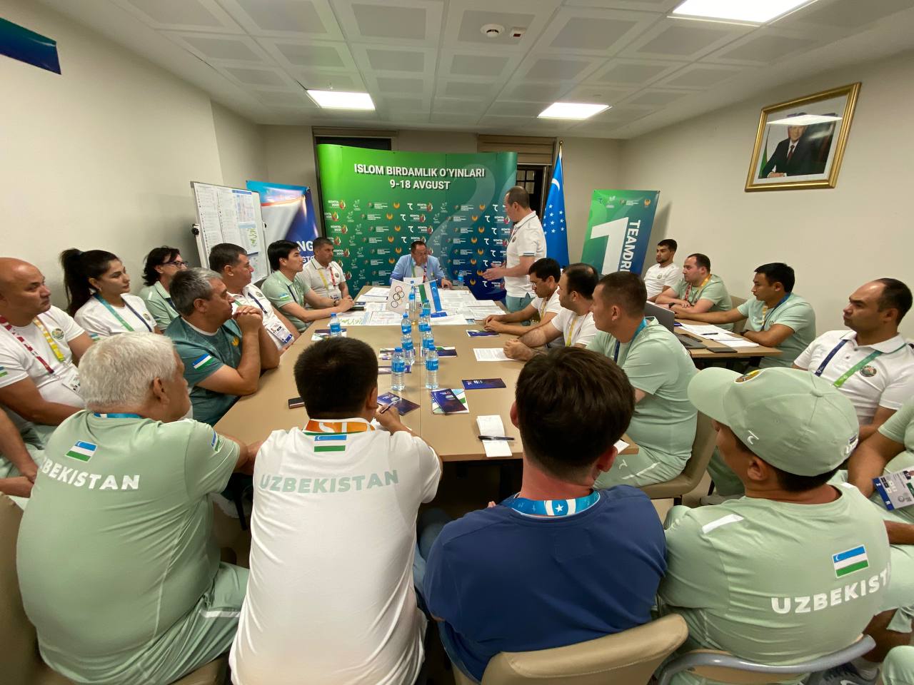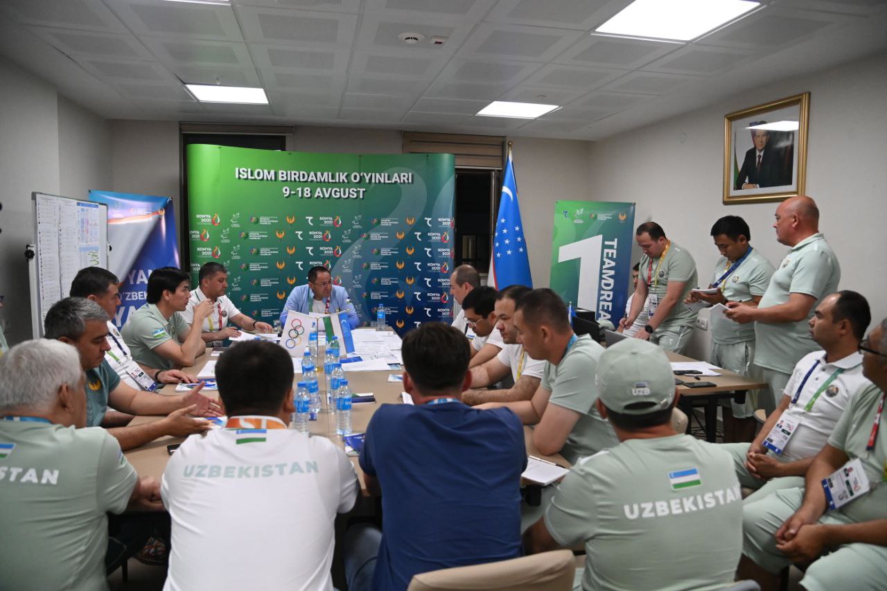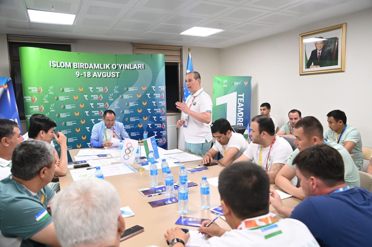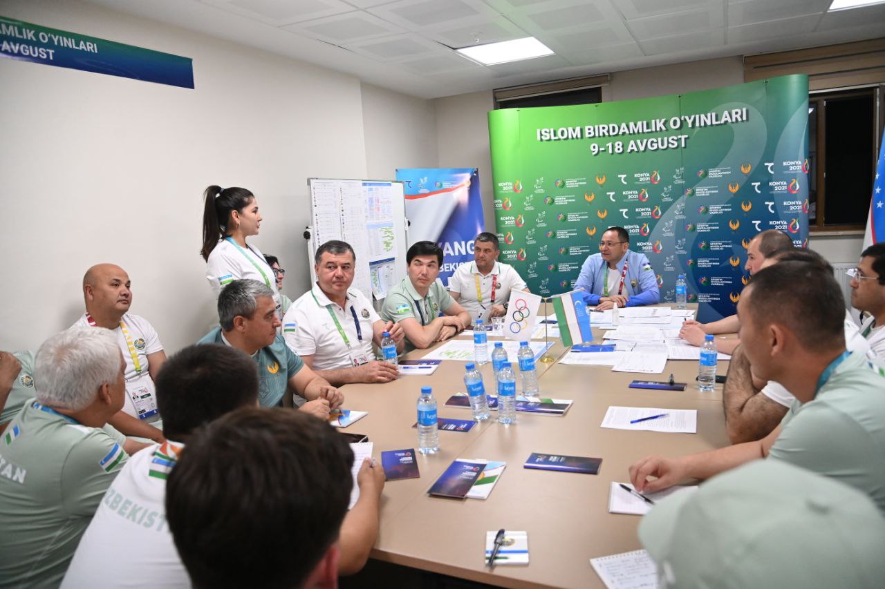 Шундан сўнг штаб вакиллари билан йиғилиш ўтказилди. Унда МОҚ раиси ўринбосари Шерзод Ташматов делегациямизнинг фаолияти, спортчиларимизнинг иштироки, штабда йўлга қўйилган ишлар ҳақида батафсил маълумот берди. Адҳам Икрамов штабда барча йўналишдаги масъуллар билан алоҳида гаплашар экан, жамоамиз эришадиган муваффақият ҳамманинг ўз ишини пухта бажариши ортидан келишини таъкидлади. Қолаверса, ҳар бир терма жамоа мураббийлари билан атлетларимизнинг ҳолати ва кутилаётган натижалар хусусида бирма бир гаплашиб чиқди.