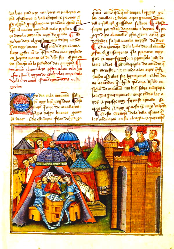 «Ўйинлар китоби» қўлёзмасида Альфонсо Х, қирол Кастилия, Галисия ва Леоннинг 150 та иллюстрацияси мавжуд бўлиб, уларнинг баъзиларида шахмат ўйини тасвирланган. Ушбу китоб стол ўйинларини ўрганиш учун энг муҳим ҳужжатлардан биридир.