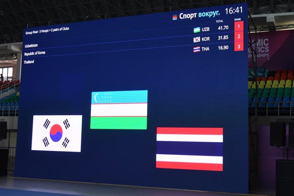 Эслатиб ўтамиз, мураббий Екатерина Пирожкова қўл остидаги қизларимиз Нилуфар Шомуродова, Ксения Александрова, Динара Равшанбекова, Севара Сафоева ва Камола Эрназарова гуруҳ машқи дастурида Олимпиада йўлланмасини қўлга киритишган. Шунингдек, кўпкураш дастурида Тахмина Икромова кумуш, Екатерина Фетисова бронза медали соҳиби бўлди.